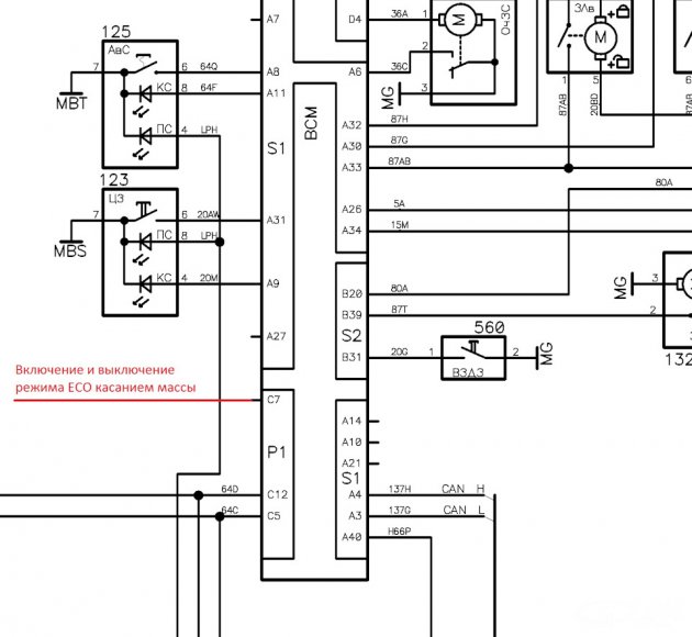 Чтобы активировать ECO режим на Lada XRAY (с двигателем Renault-Nissan) потребуется установить кнопку (артикул 251B49802R), либо замкнуть кратковременно на «массу» P1-7 контакт ЦБКЭ (где находится блок).