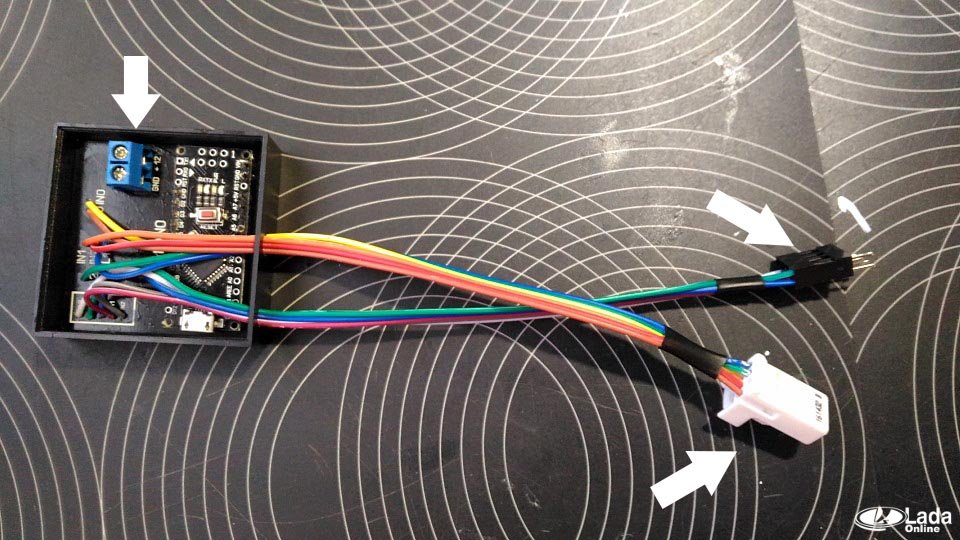 В устройстве есть защита от переполюсовки, а также если вы соедините что-то не так, то ничего страшного не произойдет. С магнитолой ничего не случится, так как цепи гальванически развязаны. Устройство также работает с мультирулем от Весты (если на XRAY активируете круиз-контроль).