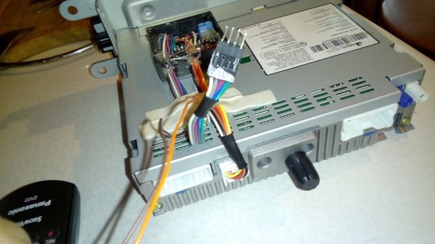 Устанавливается устройство между шлейфом от руля и ММС.