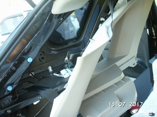 1. Снять обшивку пятой двери (вывернуть два винта внутри ручки и отщелкнуть фиксаторы по периметру).