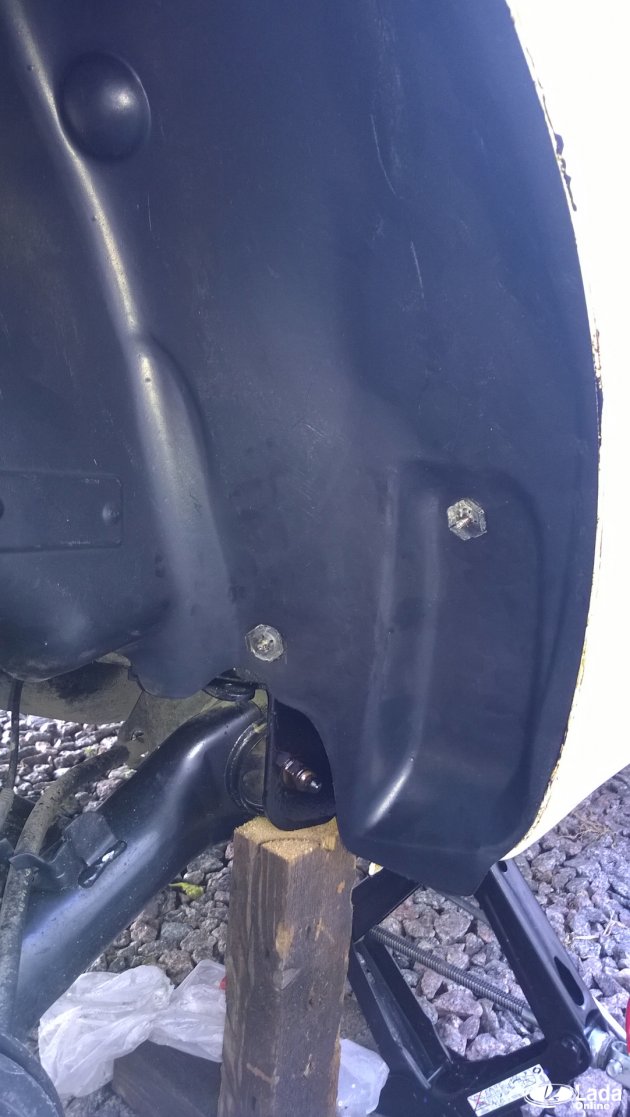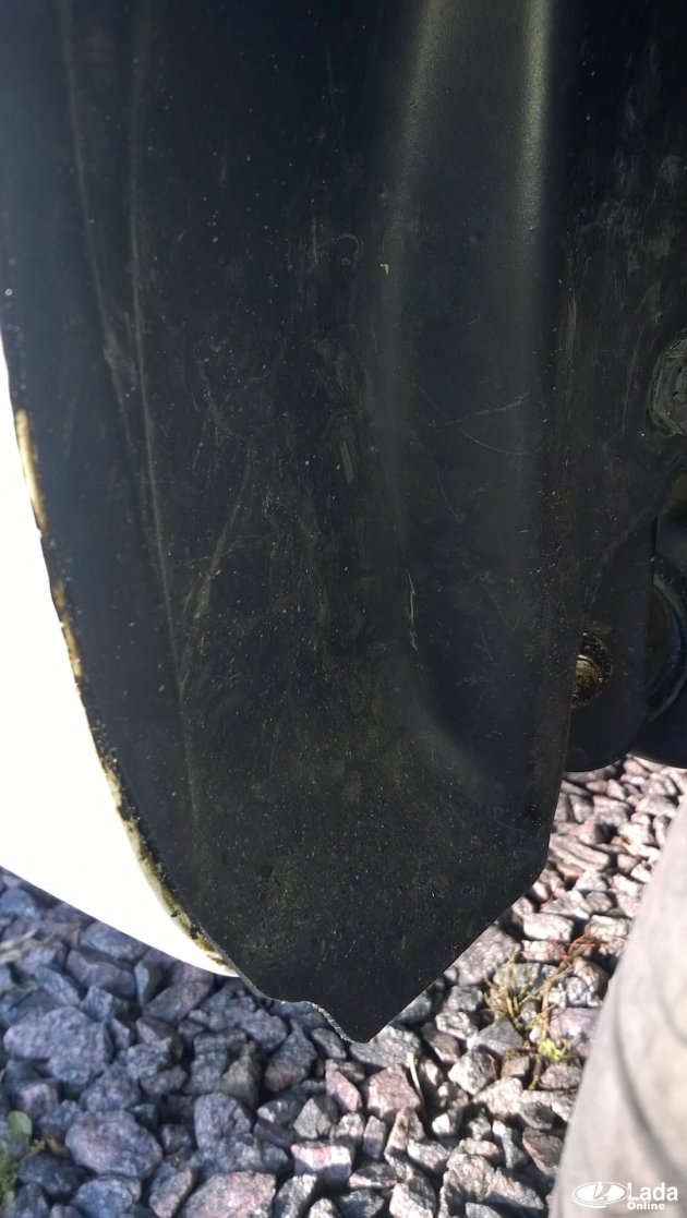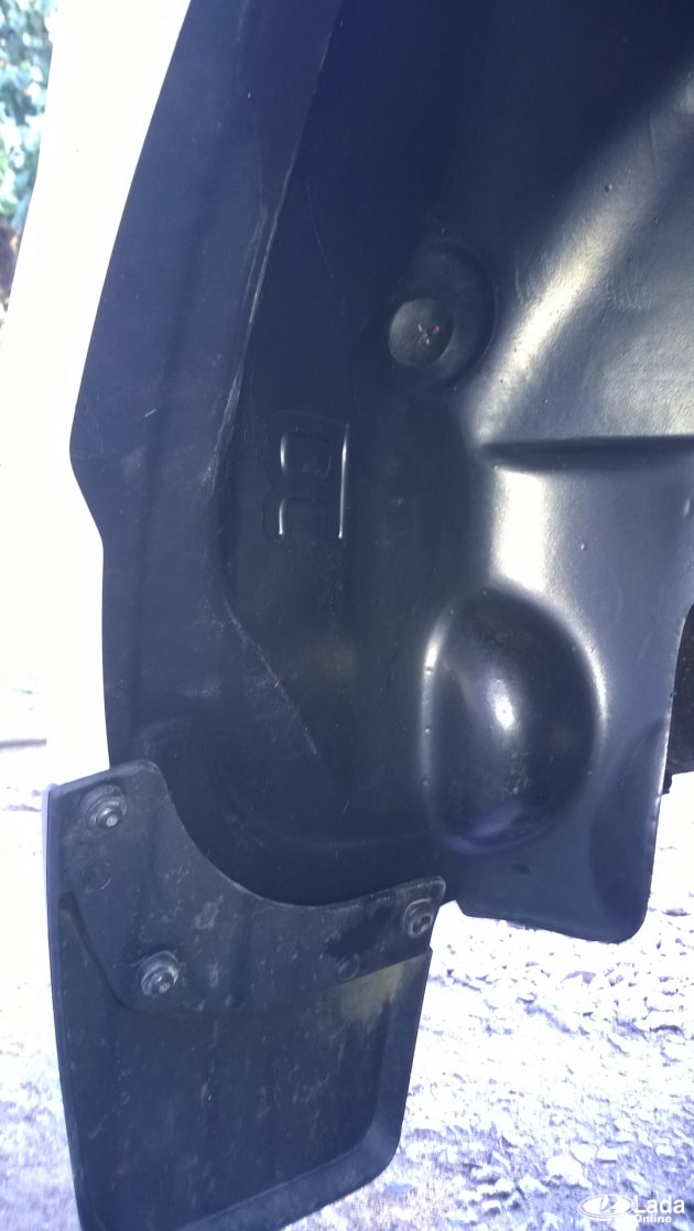 По отзывам владельцев Lada XRAY, задний подкрылок является слишком коротким и не закрывает колесную арку полностью. В нижней части есть участок в виде кармана, в котором скапливается грязь. Чтобы исправить эту ситуацию можно доработать подкрылок. Вырезаем из подходящего куска пластика щиток, которым прикрываем карман в арке, фиксируем штатными гайками.