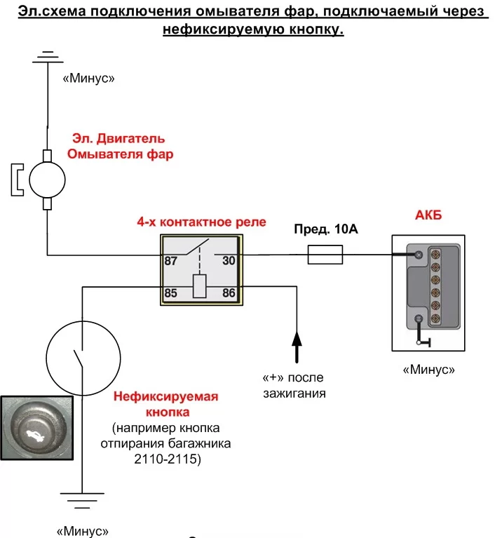8. Устанавливаем кнопку в салоне, реле под капотом.
