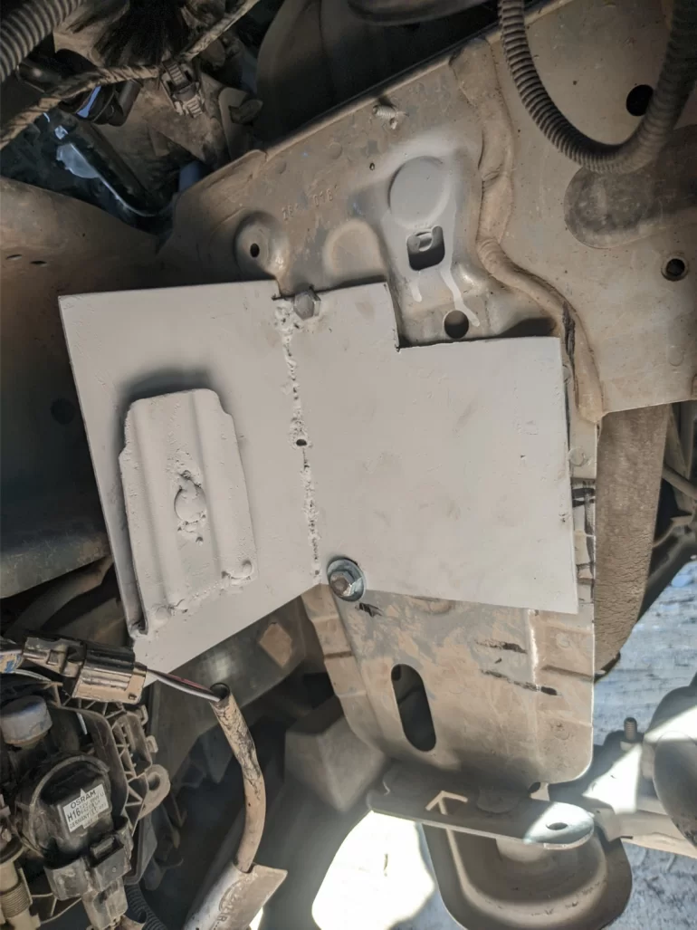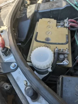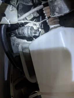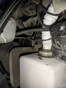 6. Бачок разместили за подкрылком. Форсунка не мешает бачку.