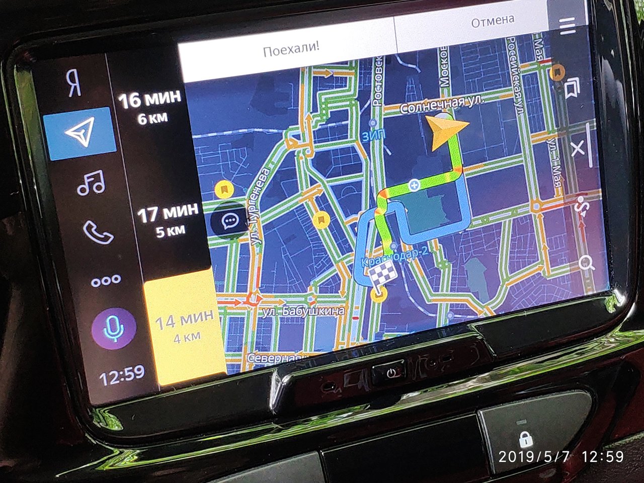 - Глюки. Замечен один. При перестроении маршрута (когда поехали не туда, куда нужно по маршруту) иногда гаснет экран, но через пару сек восстанавливается. При этом темнеет экран, когда запущен не навигатор, а другое окно музыка или погода.