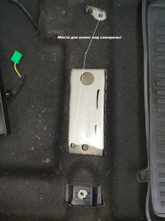 Установка очень проста. В два шестигранных отверстия в кузове устанавливаем гайки (7703043114). Фиксируем основание ящика двумя болтами (7703602234).