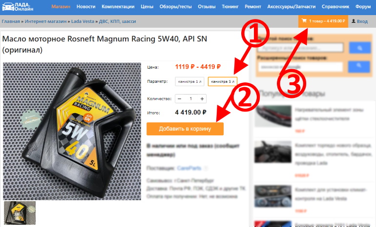 1. Выбрать параметр рядом с ценой (если это необходимо).