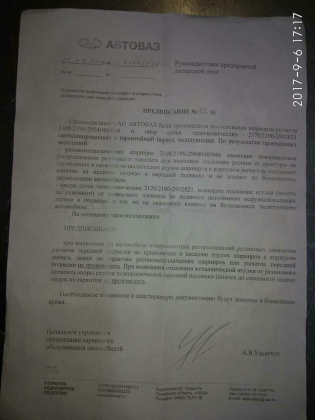 Шарнир растяжка передней подвески задний в сборе (ромашка).Можно ли заменить по гарантии на новом автомобиле?