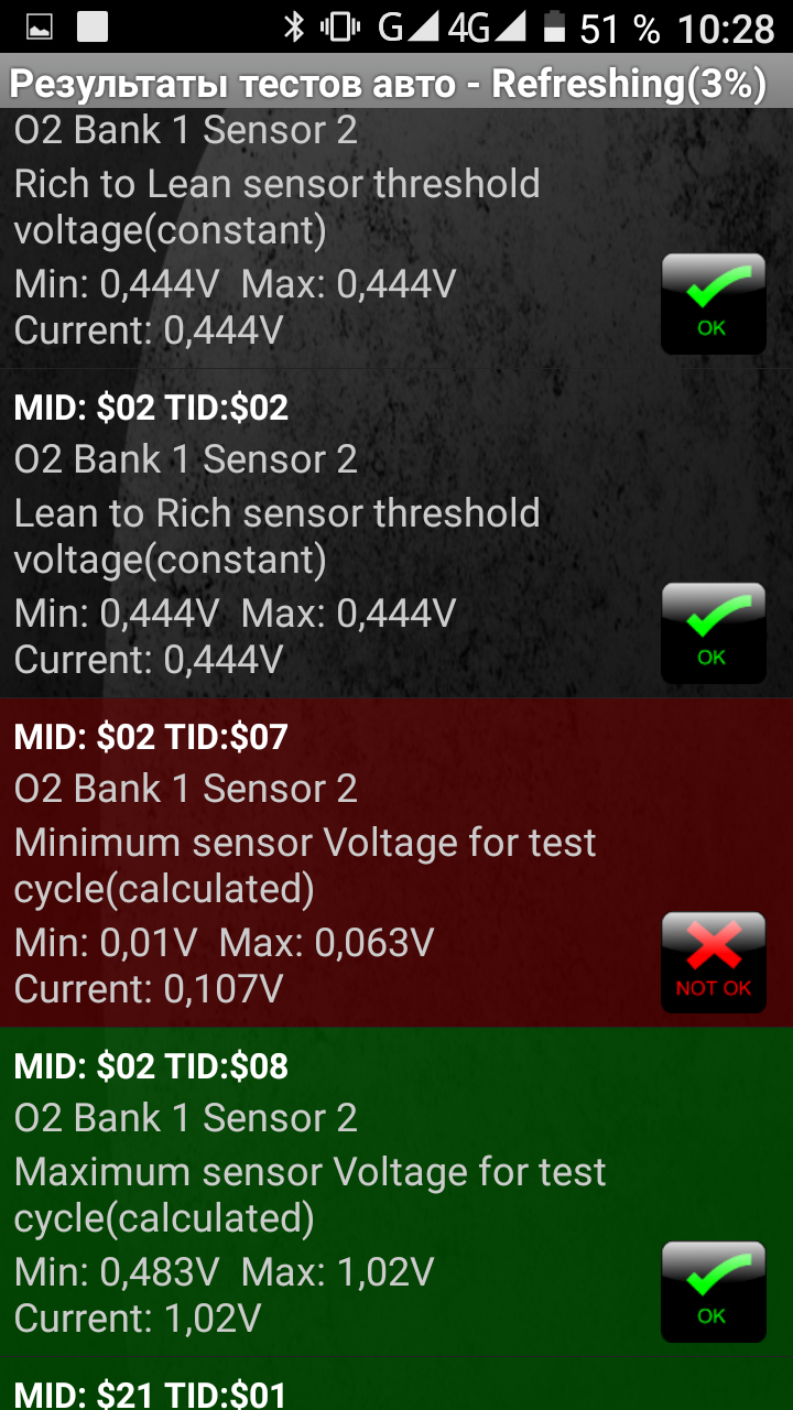 Очень редко движок при заводе немного троит и обороты скачут. Программы проверки показали странность в работе датчиков кислорода: