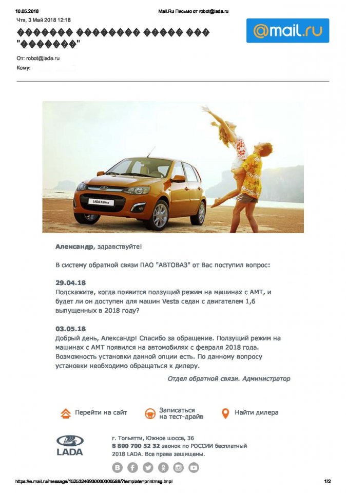 Когда появится прошивка у официального дилера «ползущий режим для АМТ» ?