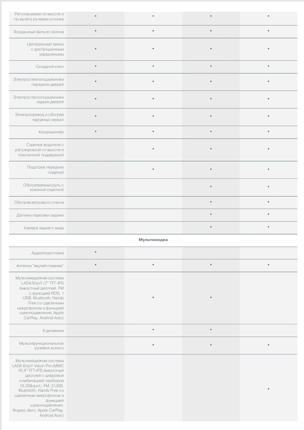 Если есть только подогрев передних сидений и мультируль с обычной 7 дюймовой магнитолой, а ручка МКПП просто резиновая (накладка вариатора матовая) - ЛАЙФ.