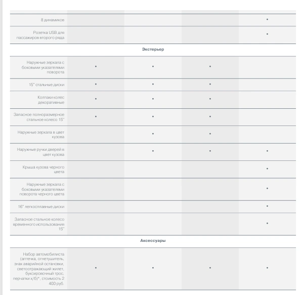 И таблица эта устарела - современные комплектации идут с добавкой 24. И там, например в энджое уже 16 колеса литые ну и ещё некоторые изменения