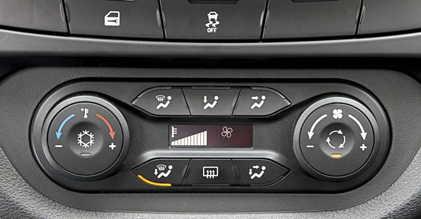 Если у вас климат, то при нажатии режима "авто" и если температура за бортом выше +5, то будет включаться и кондиционер (горит индикатор на кнопке "*"), а соответсвенно и вентилятор радиатора. После нажатия кнопки авто нажмите на снежинку, чтобы выключить кондей и посмотрите, выключился ли вентилятор.