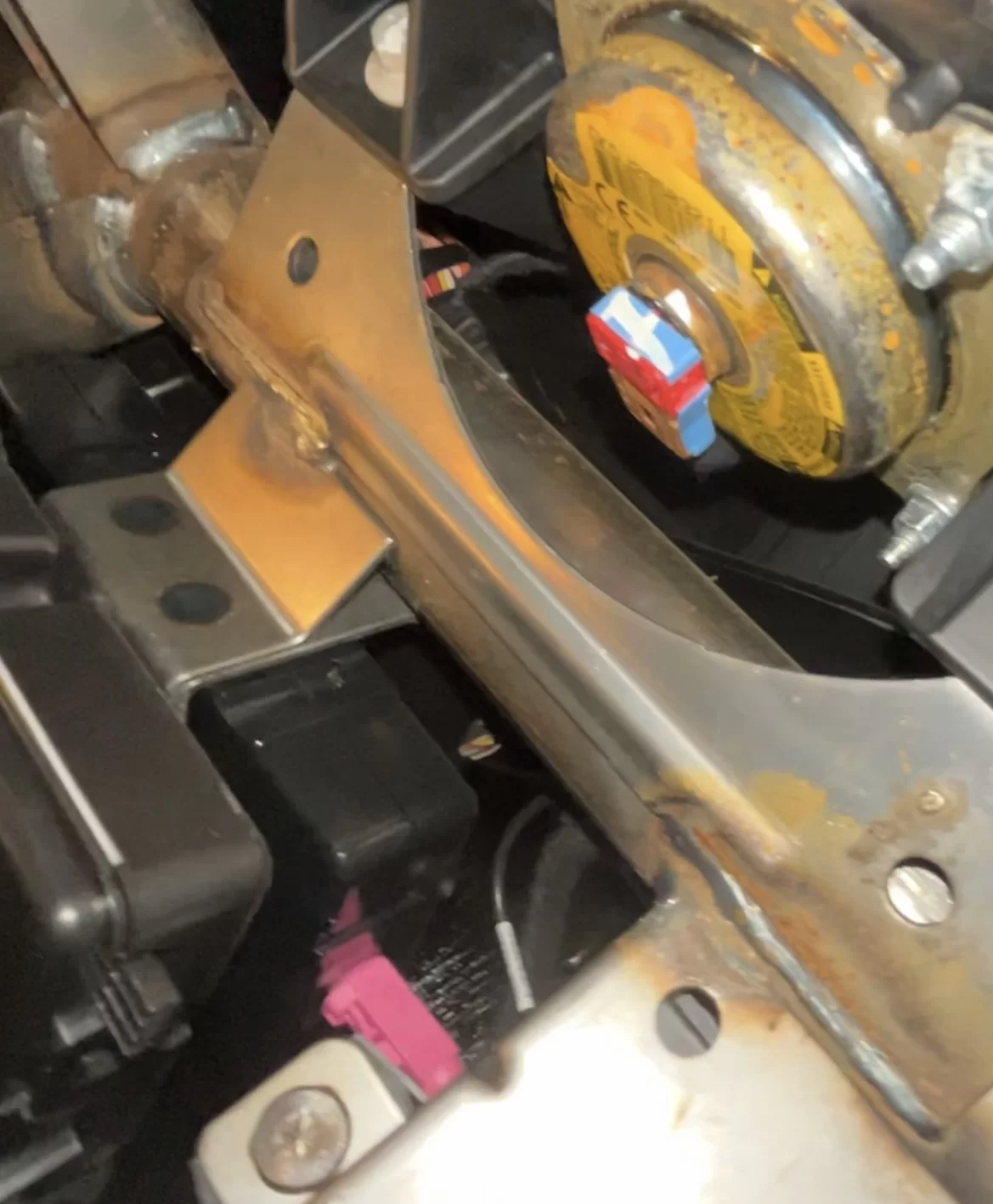 Образовалась ржавчина за бардачком, под подушкой безопасности пассажира. Смотрел видео у людей, что у них сварные швы были и хуже, по одной капли. У меня проварено, но появилась ржавчина на подушке и на кронштейнах, еще у предыдущего владельца было.