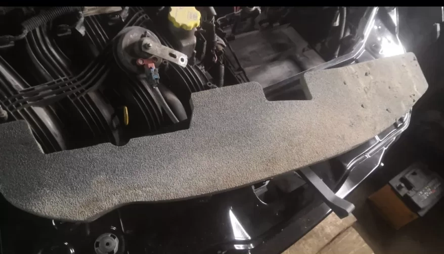 Похоже на поролоновые вставки в передние крылья. У меня на Калине они со временем превратились в бесформенные комки, пропитанные водой