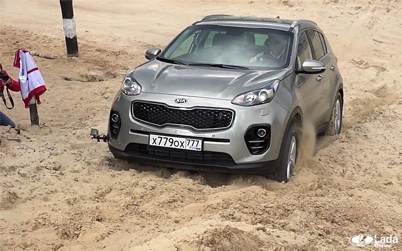 Инициатором тест-драйва по песку был новый Kia Sportage 2016. Этот факт, а также то, что по итогам испытаний внедорожник проиграл городскому кроссоверу, наталкивает на мысли о том, что обзор составлен с рекламной целью. Да и сами ведущие напоминают, что это была просто игра.