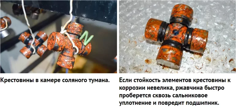 При попытке определить марку стали выяснилось, что в каждой третьей крестовине примененный материал не соответствует ни одной стандартной марке. А пребывание в камере соляного тумана в течение 5 суток показало, что все 15 крестовин в той или иной степени проржавели.