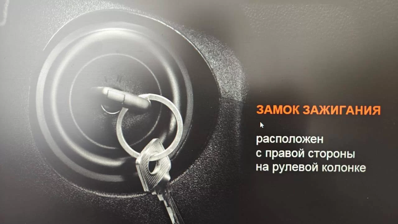 Замок зажигания расположен с правой стороны на рулевой колонке.