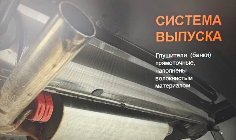Глушители (банки) прямоточные, наполнены волокнистым материалом.