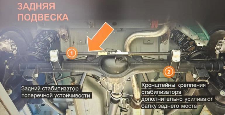 На Ниве Спорт применяется задний стабилизатор поперечной устойчивости и Кронштейны крепления стабилизатора, которые дополнительно усиливают балку заднего моста.