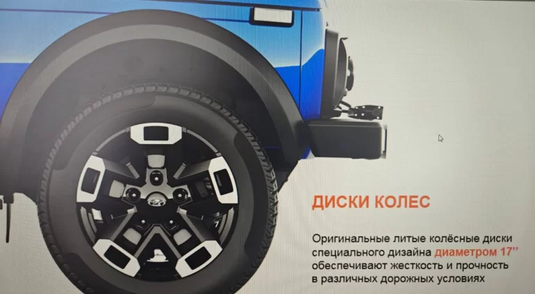 Еще одна особенность экстерьера — оригинальные литые колёсные диски специального дизайна диаметром 17'', которые обеспечивают жесткость и прочность в различных дорожных условиях.