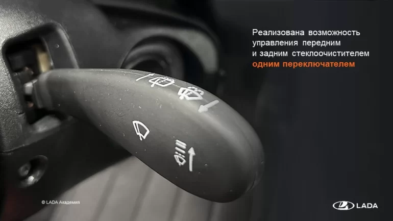 Реализована возможность управления передним и задним стеклоочистителем одним переключателем.
