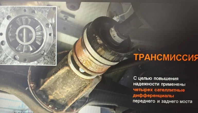 С целью повышения надежности применены четырех сателлитные дифференциалы переднего и заднего моста.