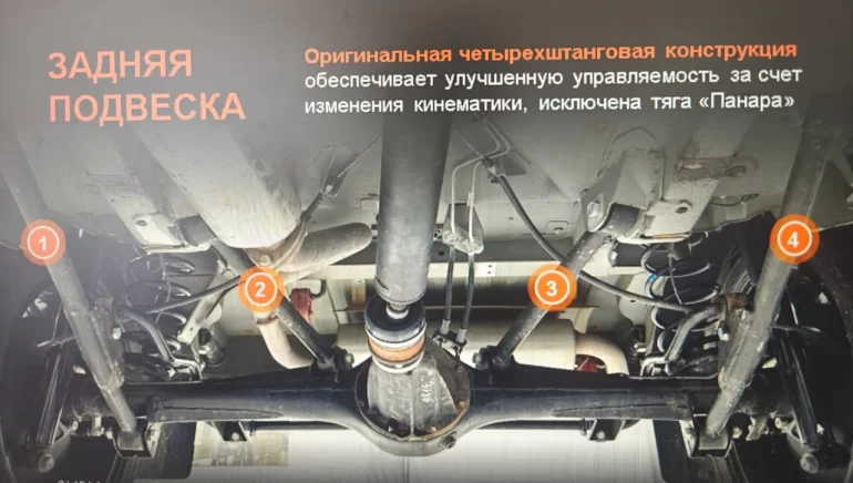 Оригинальная четырехштанговая конструкция обеспечивает улучшенную управляемость за счет изменения кинематики, исключена тяга «Панара».