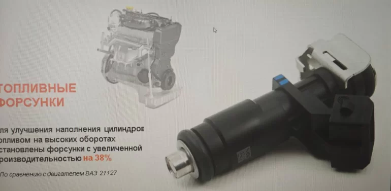 Для улучшения наполнения цилиндров топливом на высоких оборотах установлены форсунки с увеличенной производительностью на 38% (по сравнению с двигателем ВАЗ 21127).