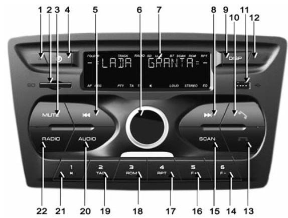 На автомобили Лада Калина 2 и Лада Гранта завод изготовитель устанавливает аудиосистемы разных типов. В данном обзоре рассмотрим работу аудиосистемы (FM, USB, SD-карта, Bluetooth, Handsfree) с каталожным номером для Лада Гранта: 2190-7900010-20 и Лада Калина: 2190-7900010-40, разница между ними только в креплениях. Эти штатные магнитолы Калины 2 и Гранты, устанавливаемая на комплектацию "норма".