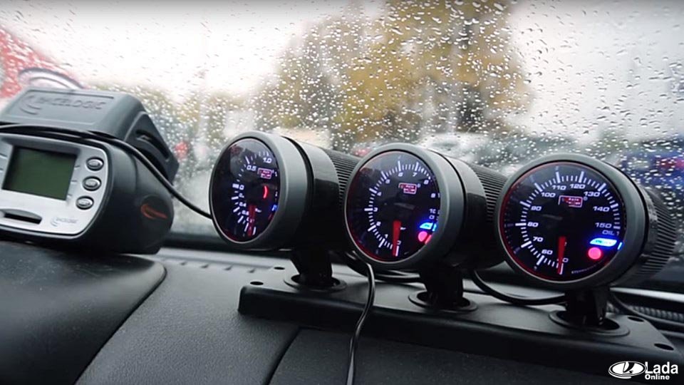 В салоне автомобиля на панели приборов установлены дополнительные приборы. Бортовой компьютер вмонтирован в круглый дефлектор со стороны водителя. Штатная ММС прошита, что существенно расширило ее возможности. В панели разместили кнопку ограничения давления наддува. Машина настроена так, что есть возможность переключать передачи без сброса газа. В результате такого тюнинга получилась сбалансированная Калина 2 с турбиной, которая без труда обгоняет полноприводную Audi Allroad с 3-литровым двигателем мощностью 300 лс.