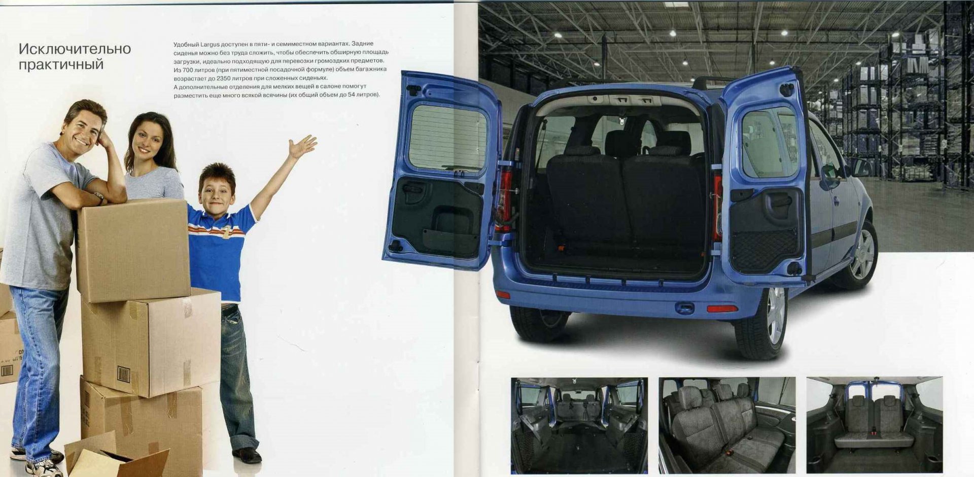 LADA Largus – лицензионный универсал повышенной вместимости на платформе Альянса Renault-Nissan B0 («Бэ-ноль»), прототип – Renault Logan MCV. Автомобиль представлен в пассажирском (семи– и пятиместный универсал) и грузовом (фургон) вариантах. LADA Largus – яркий представитель быстроразвивающегося рыночного сегмента многоцелевых универсальных автомобилей (MPV) и предназначен для удовлетворения растущих потребностей покупателей.