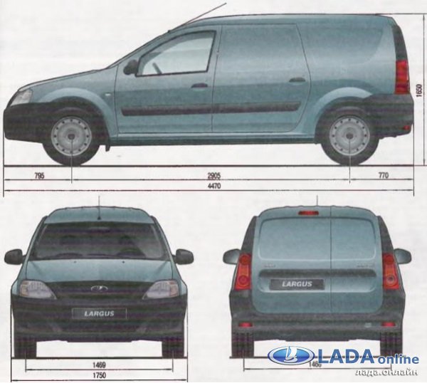 Габариты Лада Ларгус универсал и фургон одинаковые, за исключением высоты.