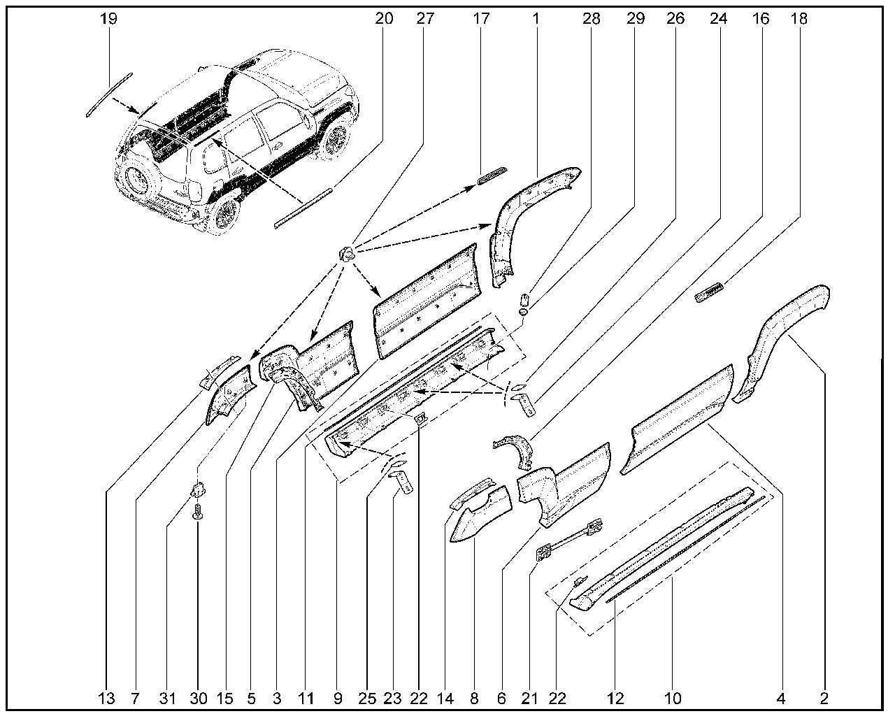 Lada Niva Travel - обновленная Lada Niva (ранее Chevrolet) появилась в 2021 году. Техническая часть и салон остались без изменений, все изменения коснулись внешнего вида внедорожника. В распоряжении сайта Лада.Онлайн и CareParts появились артикулы новых деталей экстерьера этого автомобиля.