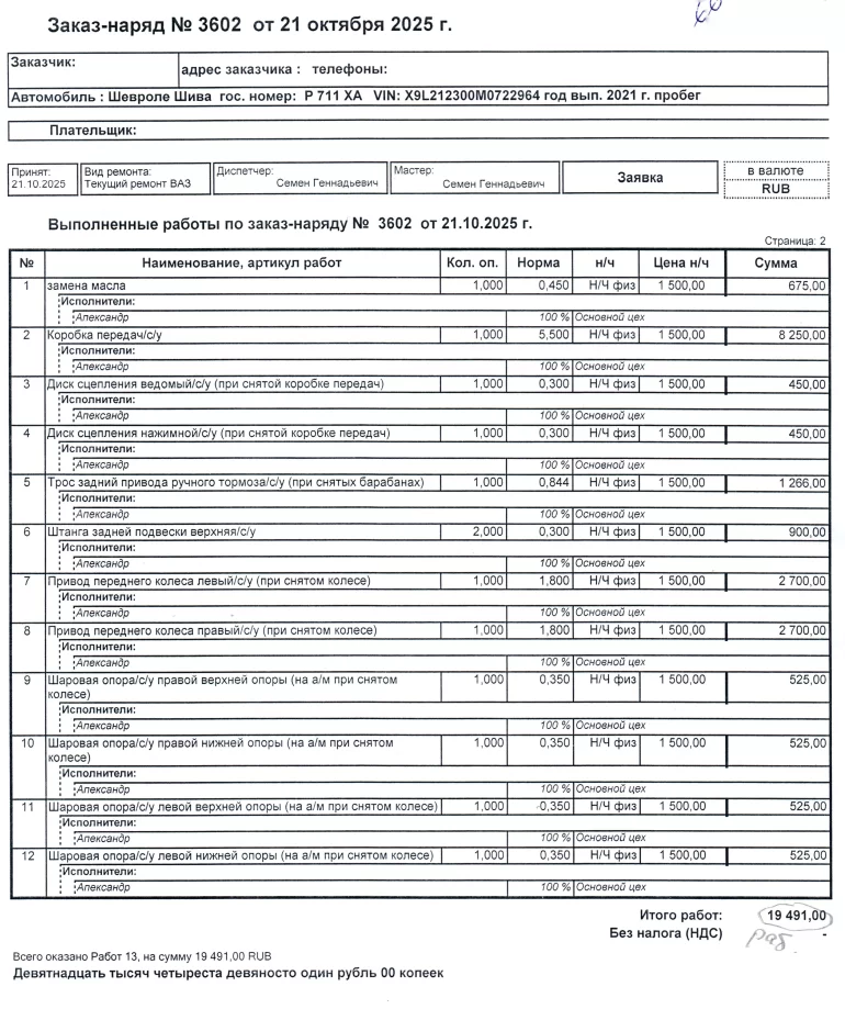 Возникла критическая проблема с перегревом двигателя из-за трещины в расширительном бачке. Проблема решена заменой бачка и доливкой жидкости. После устранения основной неисправности проведена комплексная диагностика. Двигатель и трансмиссия оказались в хорошем состоянии, но ходовая часть изношена из-за перегрузок (автомобиль активно использовался для перевозки стройматериалов).