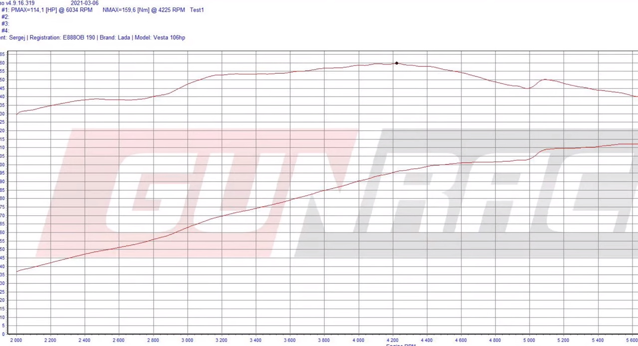 В ходе испытаний Весту разогнали до 180 км/ч, обороты двигателя в этот момент вошли в красную зону выше 6000 об/минуту. В результате стенд показал следующие результаты: крутящий момент 157 Нм при 4100 об/мин, мощность 112,9 л.с. при 5847 об/мин (напомним, в технических характеристиках двигателя ВАЗ 21129 указано значение 106 л.с.).