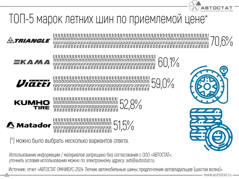 По представленным данным можно составить рейтинг летних шин в соотношении цена/качество: