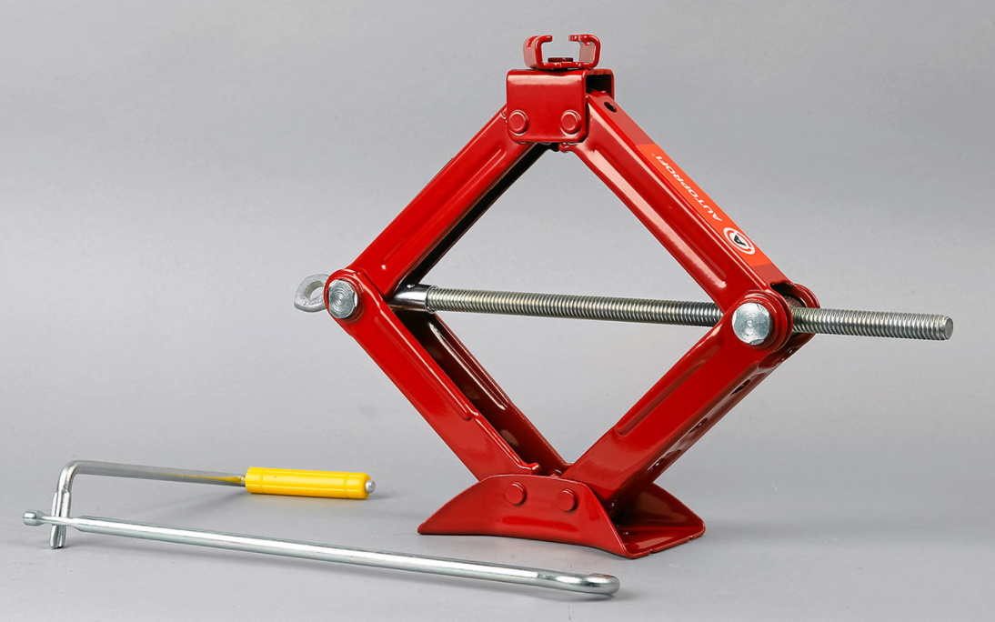 - Alca Al-436100, КНР. Домкрат винтовой ромбический. Домкрат имеет высококачественное антикоррозионное покрытие, удобную рукоятку и высокую прочность: запас — 2,4 (при нагрузке в 2400 кг разогнуло ухо рамы).