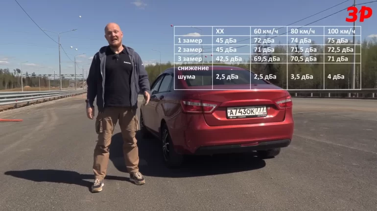 Еще один пример сравнение уровня шума в Весте до и после шумоизоляции: