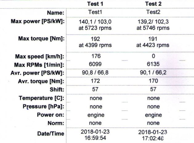 Испытания проводил портал drom.ru. Седан Лада Веста с 1,8-литровым двигателем и автоматизированной коробкой передач на момент испытаний имел пробег чуть более 800 км. После замеров выяснилось, что на колесах автомобиля 94,4 л.с. мощности и 143,3 Нм момента. После пересчета с учетом трансмиссионных потерь получили «на маховике» 121,2 л.с. и 169,2 Нм. (по паспорту 122 л.с. и 170 Нм). Реальные показания в рамках погрешности соответствуют паспортным данным. Для необкатанного до конца автомобиля это отличный показатель.