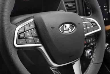 Стоит отметить, что на новой Весте управление БК теперь на руле, а не на подрулевом переключателе. Кроме этого выпирающие кнопки сделаны в виде джойстиков (перемещаются вверх/вниз).