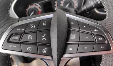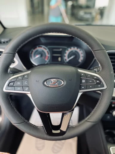 Стоит отметить, что на новой Весте управление БК теперь на руле, а не на подрулевом переключателе. Кроме этого выпирающие кнопки сделаны в виде джойстиков (перемещаются вверх/вниз).