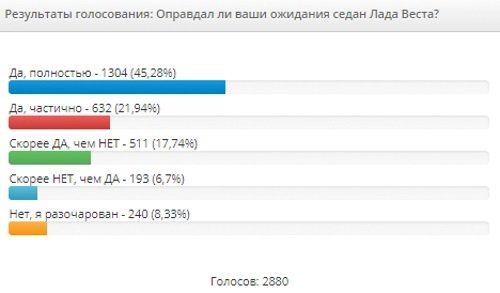 Продажи седана Лада Веста начались в конце ноября 2015 года. С этого момента на сайте лада.онлайн появилось множество опросов, которые были посвящены этой модели АВТОВАЗа. За 2 года в них приняло участие более 20 тысяч автолюбителей разного пола и возраста. Результаты голосований дают понять, какой оказалась Lada Vesta в глазах народа, а также, чего не хватает этому автомобилю.