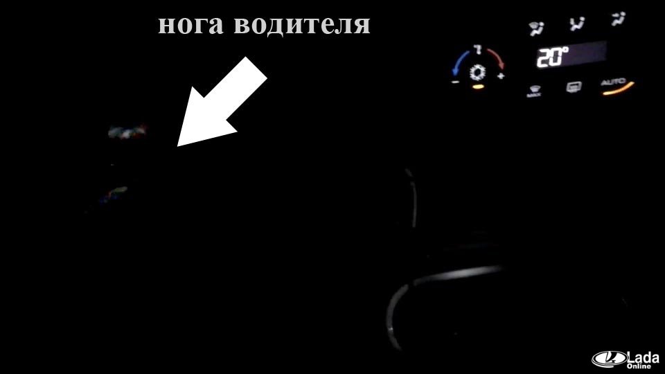 Подсветка ниши под блоком отопителя и в ногах водителя показана на фото: