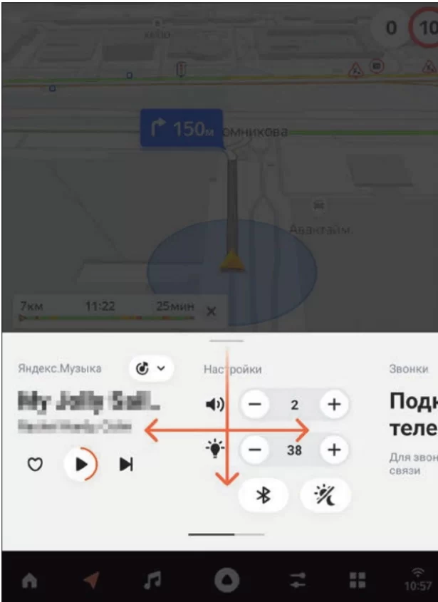 Дополнительную область можно скрыть на любом экране, кроме «Домашнего экрана» и экрана проекции Android Auto и Apple CarPlay – для этого потяните ее вниз, а чтобы открыть – потяните ее вверх от нижней части экрана. Кроме того, при переходе на какой-либо экран, на информационном блоке перестанет отображаться соответствующий виджет. Например, при переходе в экран Навигатора не будет отображаться навигационный виджет.