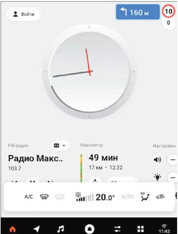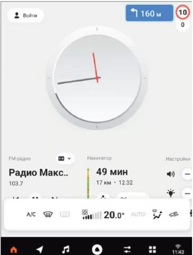 Например, в нем Вы можете видеть информацию о текущей радиостанции, не открывая музыкальное приложение, пока в основной области отображается Навигатор. Или увидеть прогноз погоды, пока в основной области отображаются Настройки. Также с помощью этих виджетов Вы можете управлять приложениями, осуществлять быстрый переход между экранами системы сразу к приложениям, например, управлять воспроизведением мультимедийной системы, изменять или отменять маршрут следования, изменять громкость и яркость экрана и другие. Чтобы просмотреть все виджеты, необходимо смахнуть влево или вправо ленту информационного блока.