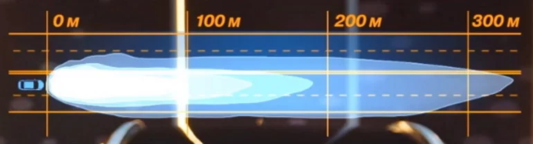 При включении дальнего света ближний продолжает работать, создавая максимальный световой поток. Благодаря этому отсутствует переход между зоной ближнего и дальнего света, и создаётся комфортная световая дорожка при движении по трассе в темное время суток.