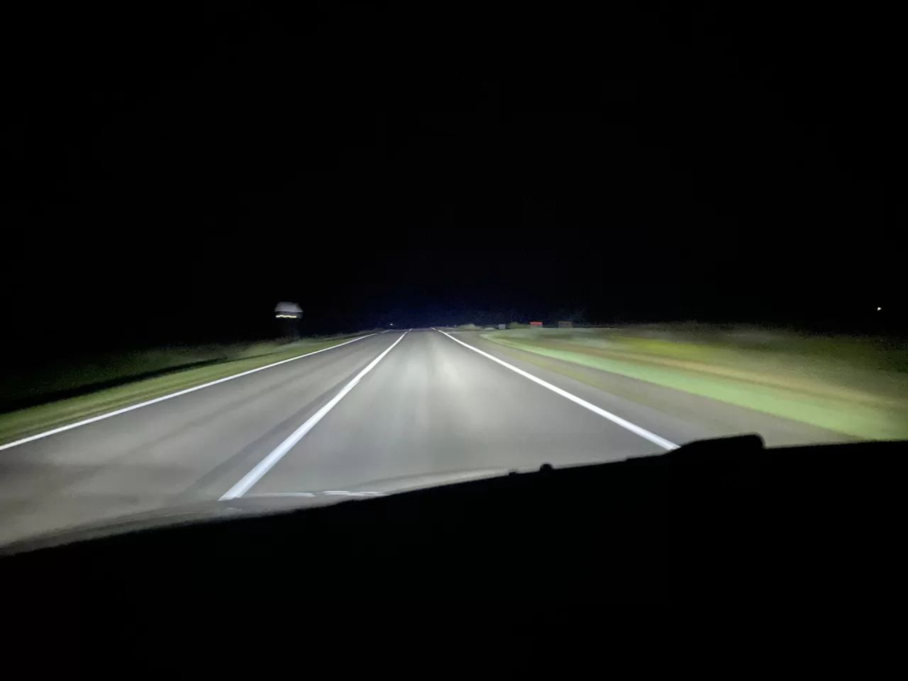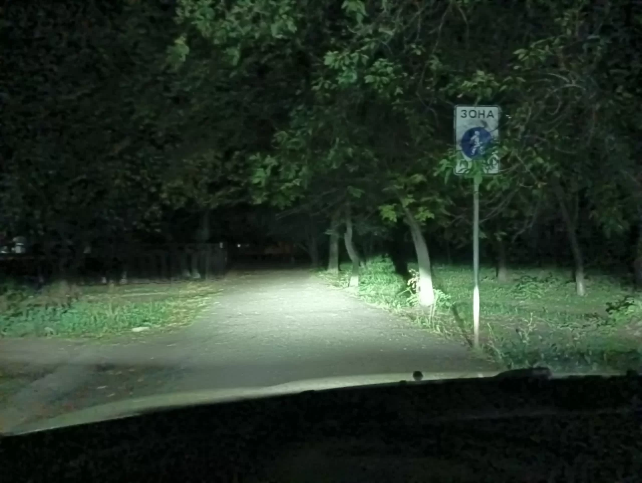 Свои наблюдения владелец подтверждает фотографиями, на которых демонстрирует светотеневую границу (СТГ) светодиодных фар Vesta NG (на фото ближний с ПТФ и ближний+дальний с ПТФ):