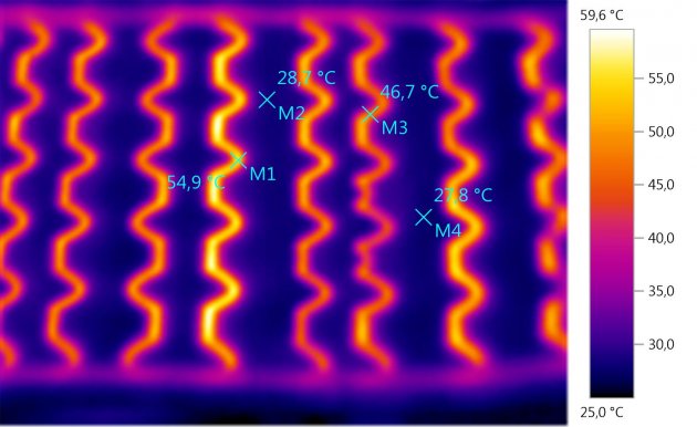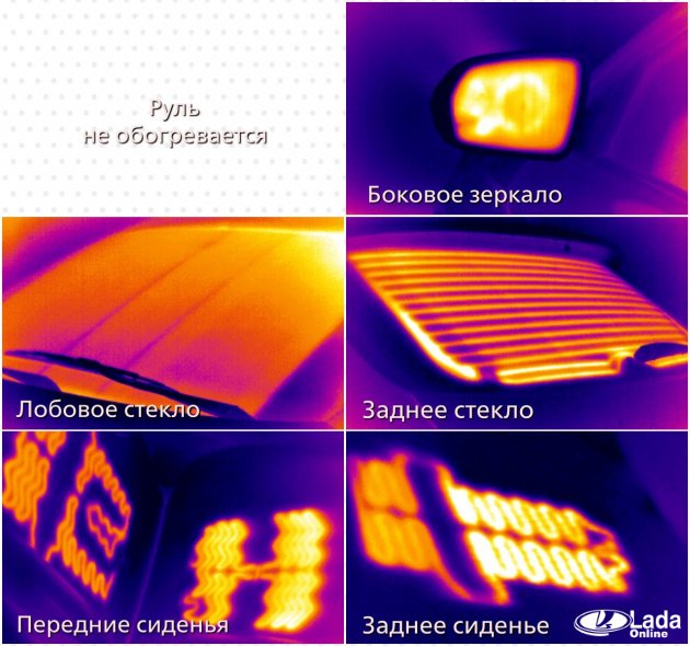 Тепловизор позволяет наблюдать за распределением температуры на поверхности. Распределение температуры отображается на дисплее как цветная картинка, где разным температурам соответствуют разные цвета. Оцениваем при помощи этого прибора эффективность отопителя, обогревов стекол/зеркал, определяем места выхода тепла на Lada Vesta.