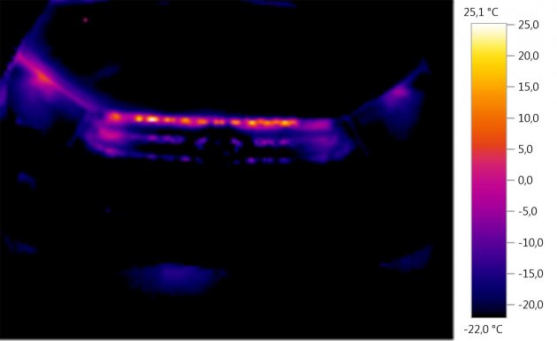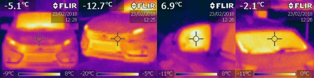 Термография автомобиля №1 (температуре за бортом -22оС, температура двигателя -14оC, двигатель накрыт автоодеялом):