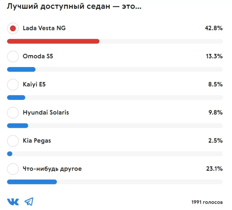 Примечательно, что в опросе среди читателей победу одержала тоже Lada Vesta NG.
